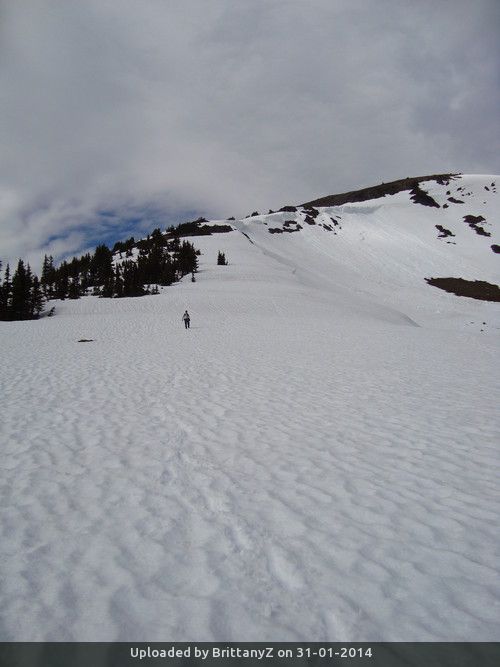 The trail starts out as a good quality switch backing trail and will likely hit snow in the forest, at which point it becomes a long upwards journey. There is a short scramble at the very peak that may or may not be covered in snow. Hopefully fantastic views at the top (weather dependent).