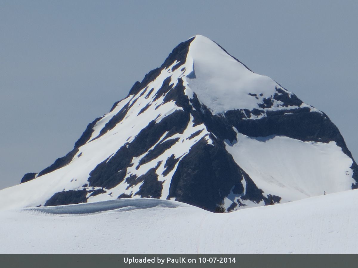 This trip will be a one-day trip covering approximately 38 kilometers round trip and 2900 meters total elevation gain. Despite that, the pace will not be fast and furious. It will be steady and sustainable with breaks. Most travel will be on trail (Centennial Trail or Skyline Divide and then Hozomeen Ridge Trail) to Monument 74. Thence south to Hozomeen northwest ridge. The climbing will require an ice axe, helmet, sturdy mountain boots and crampons. The rock type is such that there is little possibility of placing protection so climbers must be able to climb Class 3 with shorter sections of Class 4, including exposure without belay. Climbers must be able to downclimb the route without rappel. Climbers must be able to self arrest on steep snow. Note: that the route leans back a bit from what photos from a distance show.