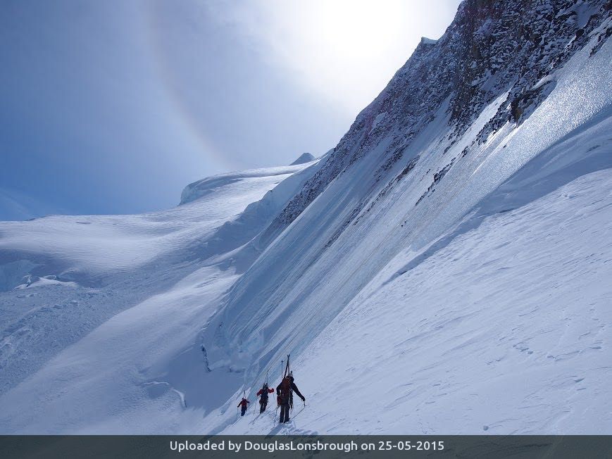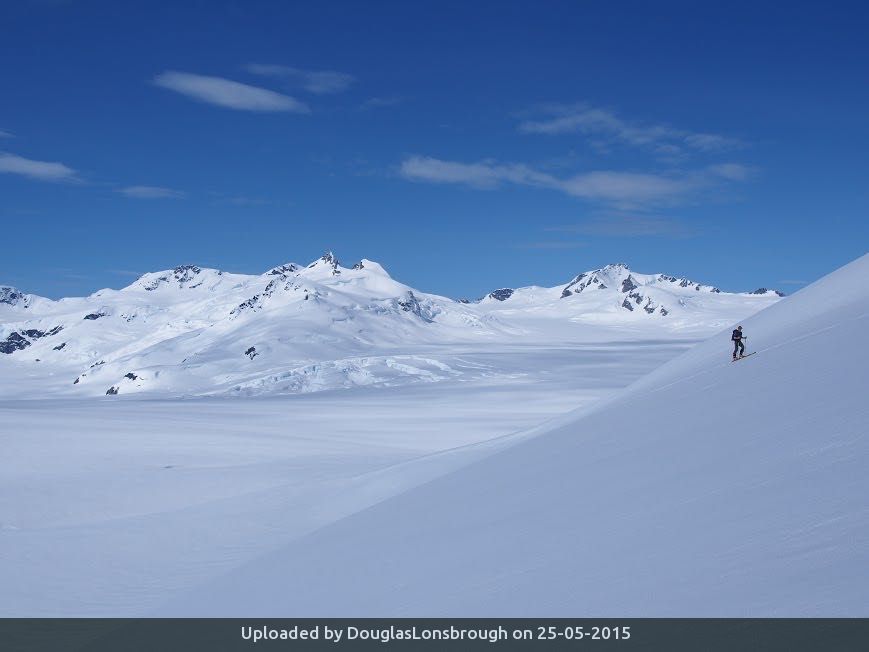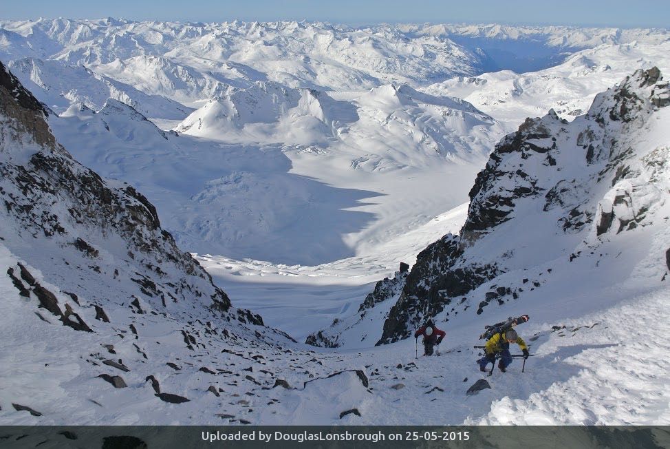 Ben Shewan, Alex Ramanciuc, Dean Perez and Alexis Guige decided that Mt. Waddington would be their main objective for this year. Feeling that the true summit was too technical for them, the team made for the slightly lower northwest summit which can be skied almost all the way to the top. When they finally got a good weather window in April, they flew in to Dais Glacier and climbed Mt. Waddington the next day. Not surprisingly for folks who did the Stein Valley traverse in 28 hours, they spent 14 hours on the ascent for a 21 hour round trip navigating though circuitous crevasses and seracs. The team then spent a week exploring the area and enjoying some very nice corn snow and beautiful scenery.