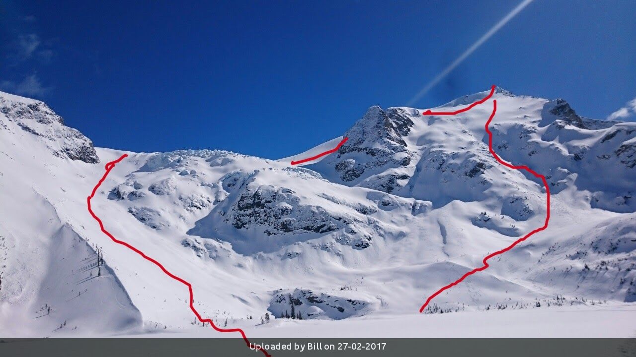 Please note: This trip involves high angle skiing to 40 degrees so participants must be experienced backcountry skiers comfortable with steep slopes. The backup will be Tzsil if the conditions on the Stonecrop glacier are unfavourable. This is a fast paced day trip requiring a high level of fitness and is not suitable as a first trip with the club. You must be able to independently navigate in the mountains. I have posted a GPS track of our planned route.