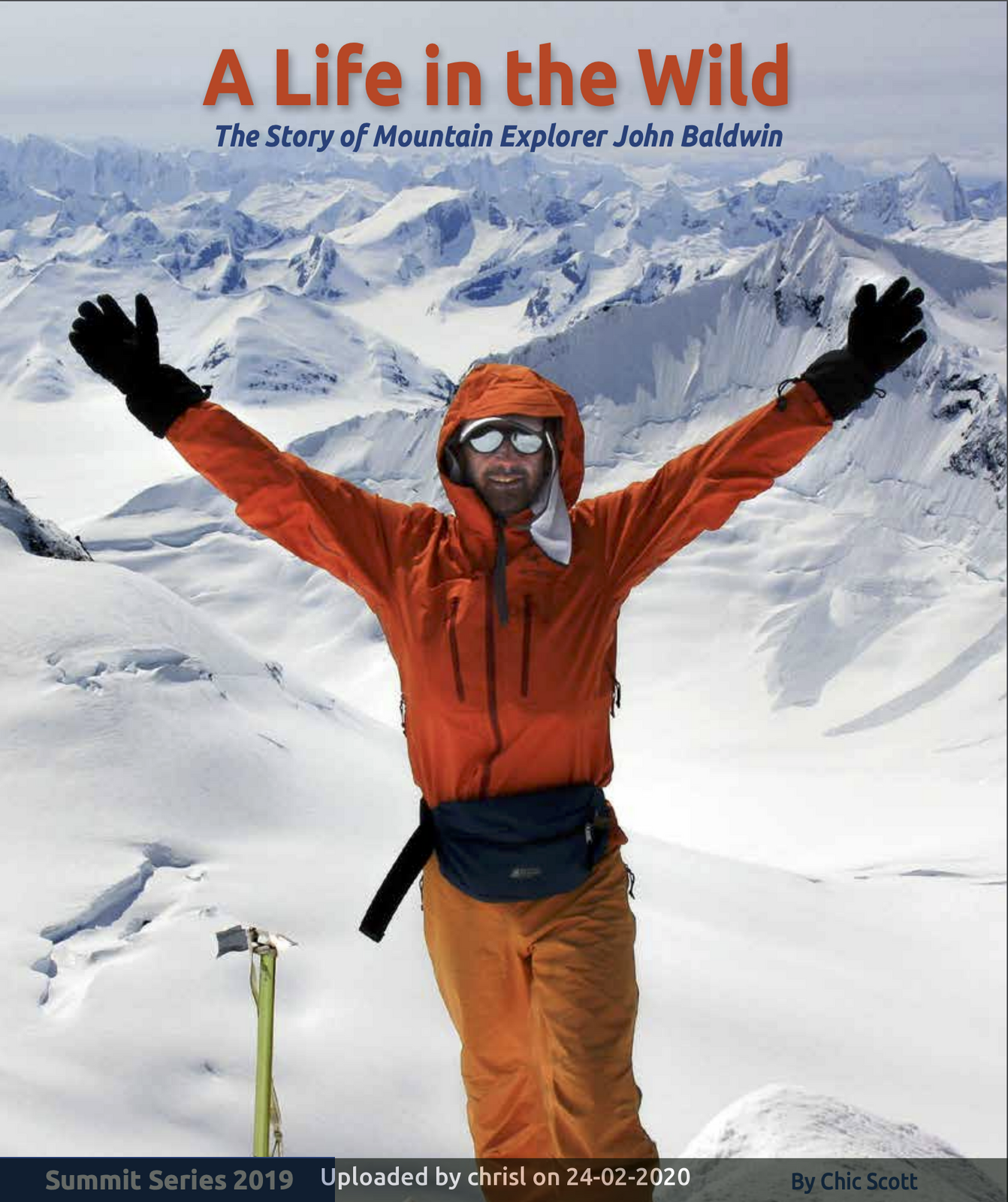 Known affectionately to his friends as the King of the Coast Range, John Baldwin has spent his life in a quest to experience the west coast wilderness. Since his teenage years he has explored the rugged Coast Mountain Range, climbing 700 peaks, many of them first ascents, and making perhaps one hundred multi-week, long-distance forays across the ice fields and along the ridges of what is one of the last true wilderness areas on earth. Shunning the easy path, John has forged his own way through some of the toughest geography on the planet. He is a mountaineer and explorer of the first order.