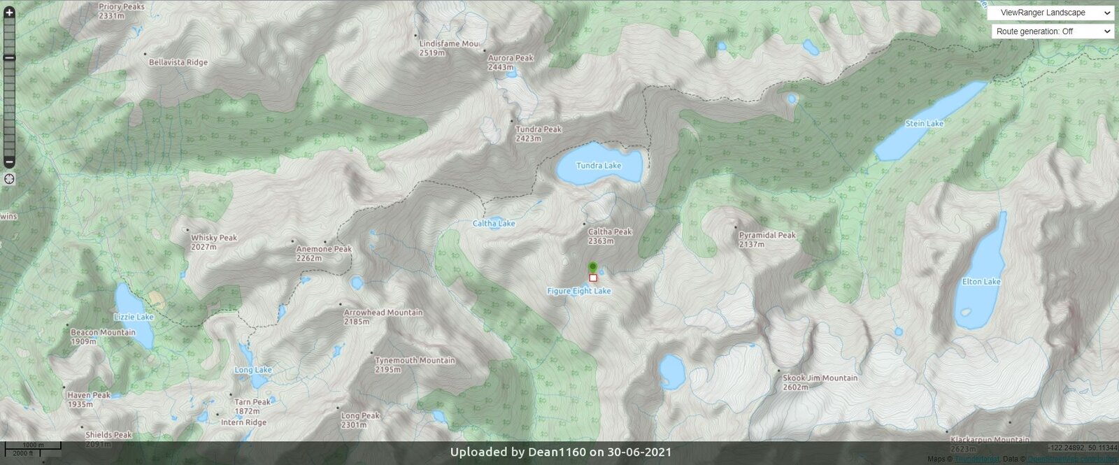 We would be dropped off just outside the western boundary of Stein Valley Park; specifically, an alpine spot south of Caltha Peak, near Figure Eight Lake.