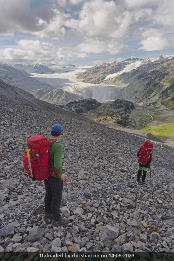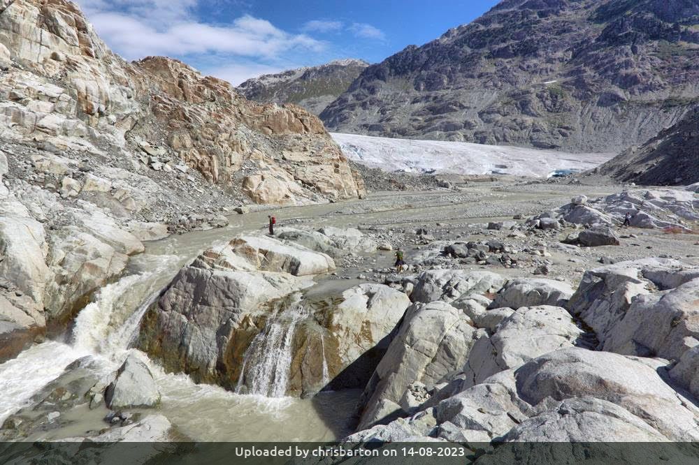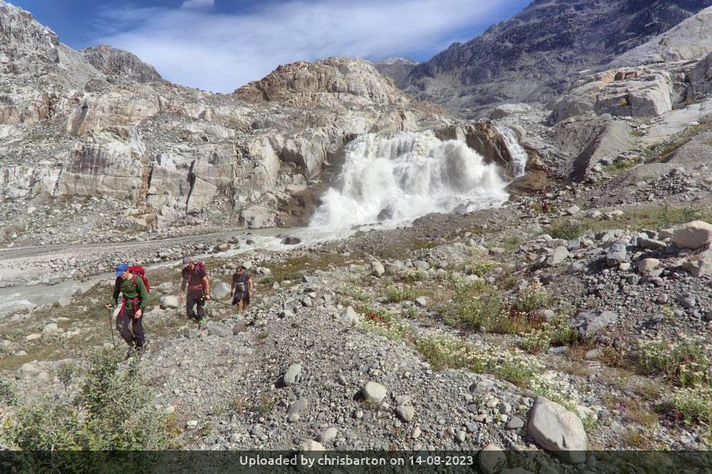 Sunday: head along scenic river with waterfalls to the edge of the icefield. Perhaps explore along edge of icefield in search of ice caves. Camp in scenic alpine hills with lakes at foot of icefield.