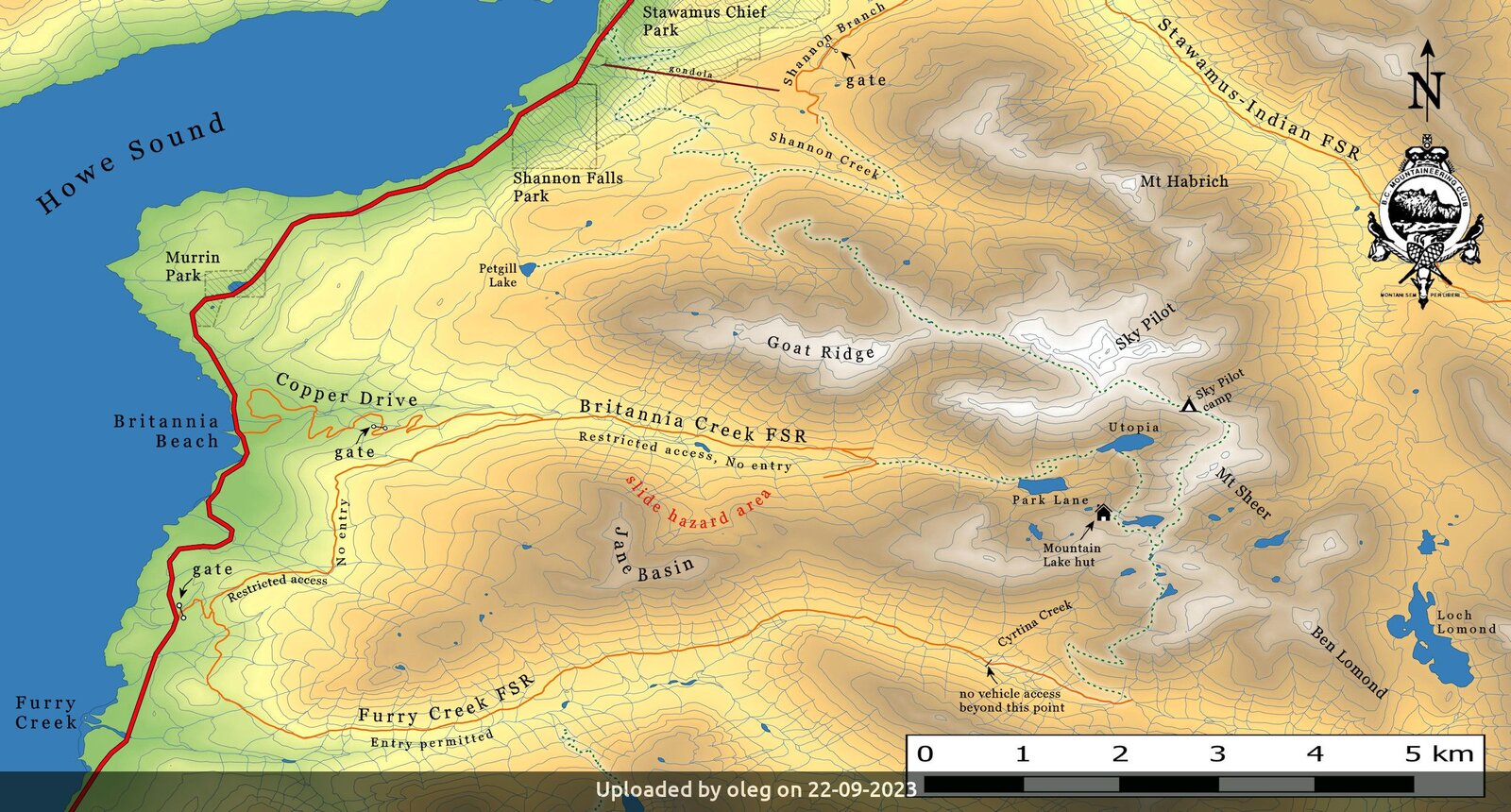 Planning to drive the first 10 km of Furry Creek FSR (I'll have the key for the gate) and hike from there to the hut or basecamp at the lake.