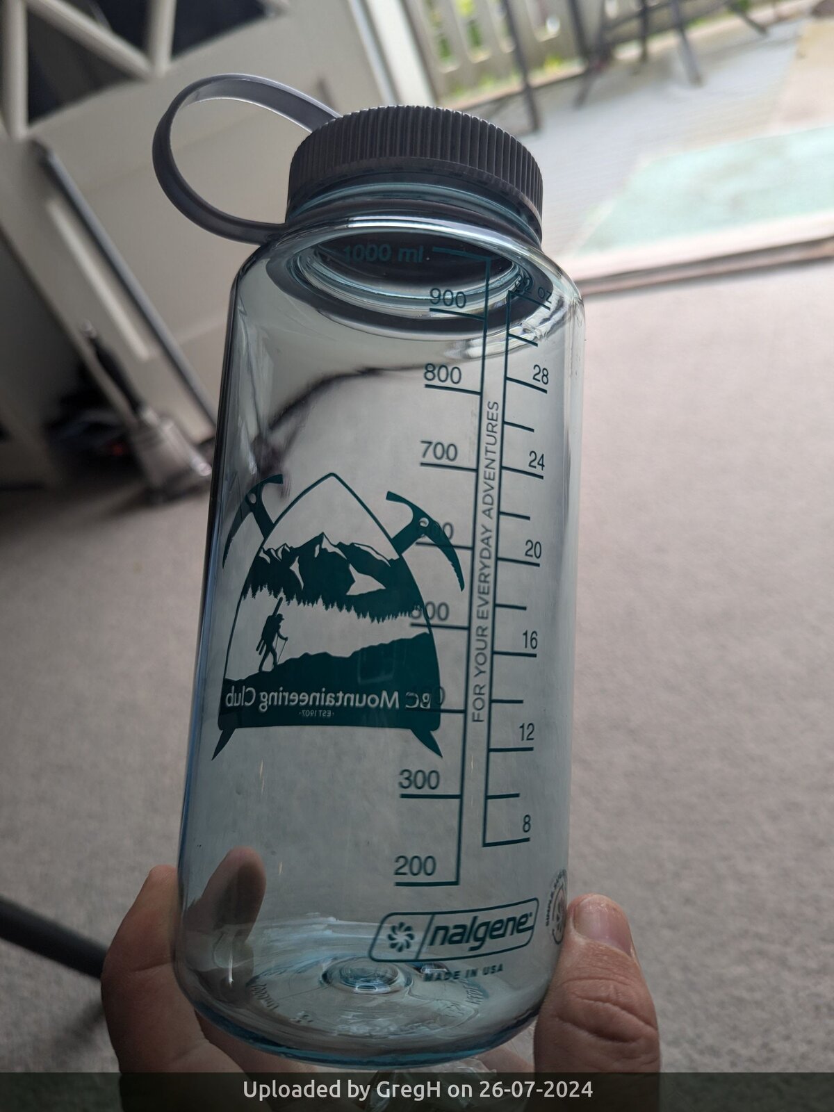 Everyone needs another Nalgene bottle! These have the swanky "new" club Logo on the front with measurements on the back The bottle is transparent sea-foam in colour with a grey lid. Check out the photos in the "trip pictures" tab.