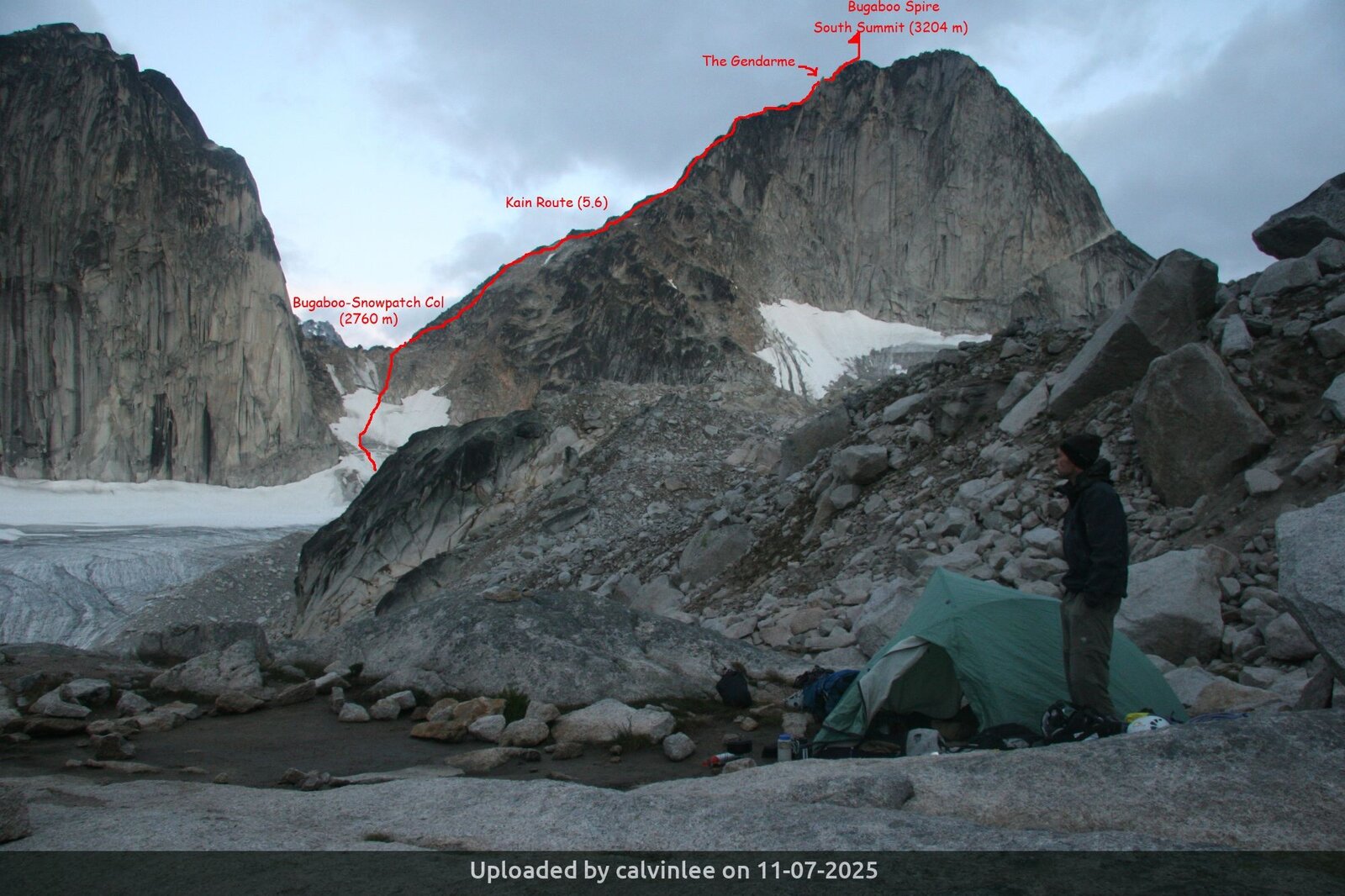Crampons and Ice Axe are needed for descending onto Snowpatch-Bugs col. (we will carry them while climbing),