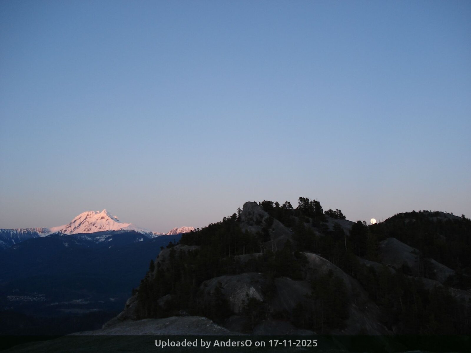 This trip is dependent on there being clear weather. The objectives are an afternoon hike up the first summit of the Stawamus Chief, in time to seen the sunset and moonrise, and celebrate the coming winter solstice. (It's the night of the full moon.) Followed by a descent, and a bite to eat. We'll start hiking at 2:30 = leave city after lunch.