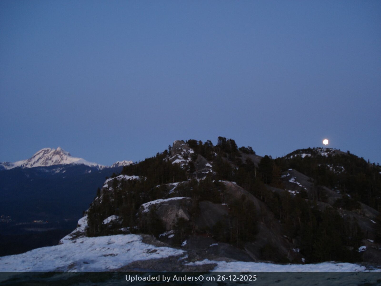 This trip is dependent on there being clear weather. (Essential!) The objectives are an afternoon hike up the first summit of the Stawamus Chief, in time to seen the sunset and moonrise, and celebrate the winter solstice. (It's the night of the full moon.) Followed by a descent, and a bite to eat. We'll start hiking at 2:30 = leave city after lunch.