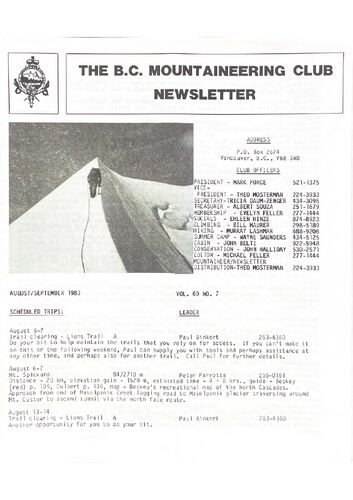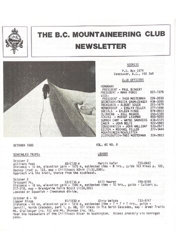 The BCMC archives provide a wealth of interesting information about the history of the club, including historic activities, ecological changes, conservation and more. In the last few years, the archives have contributed to a book written by Kathryn Bridge about Phyllis Munday, 3 university graduate theses and several published papers written on such diverse topics as effects of climate change on vegetation and glaciers, risk taking by people and contribution to society by mountain climbers. They have also assisted a museum display by the North Vancouver Museum and Archives (NVMA), where they are now stored, and have featured prominently in the NVMA web-based history of BC mountaineering... Climbing to the Clouds: A People's History of BC Mountaineering.